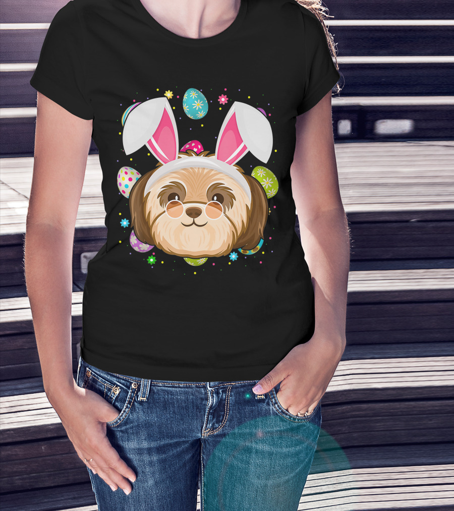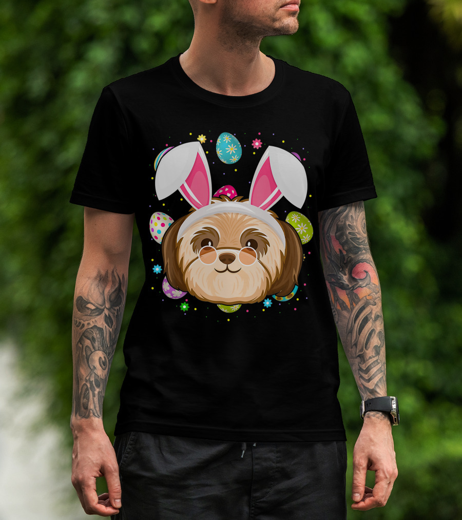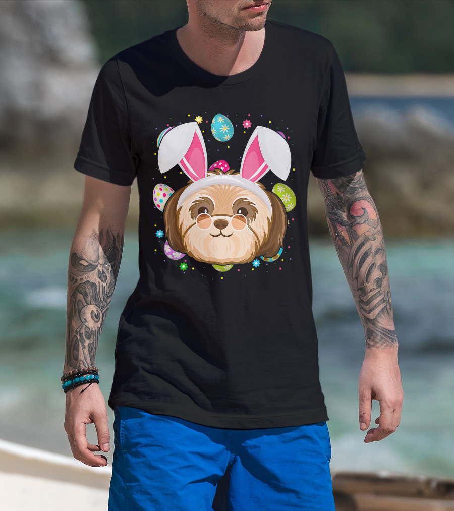 Easter Egg Lover Bunny Ear Shih Tzu Dog Face Easter T-Shirt