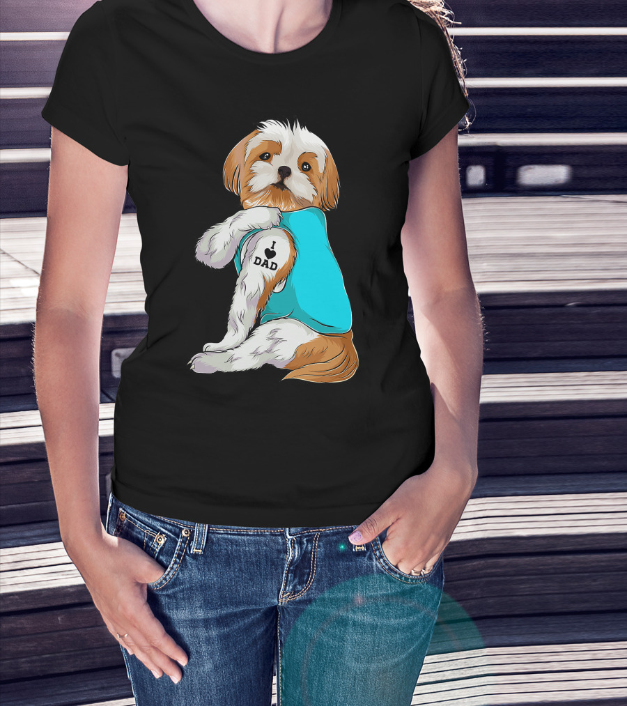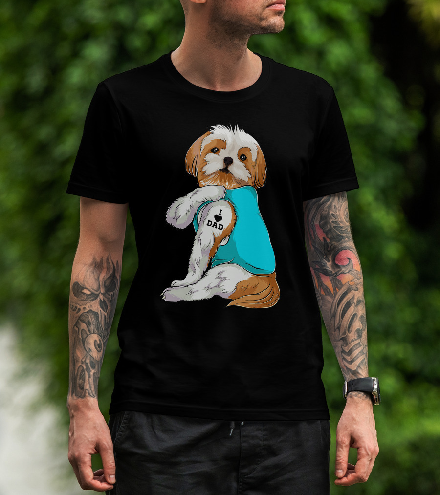 Fun Shih Tzu I Love Dad Tattoo Dog T-Shirt