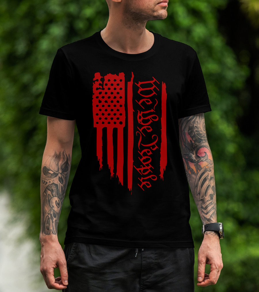 We The People Distressed Red American Flag Gothic T-Shirt
