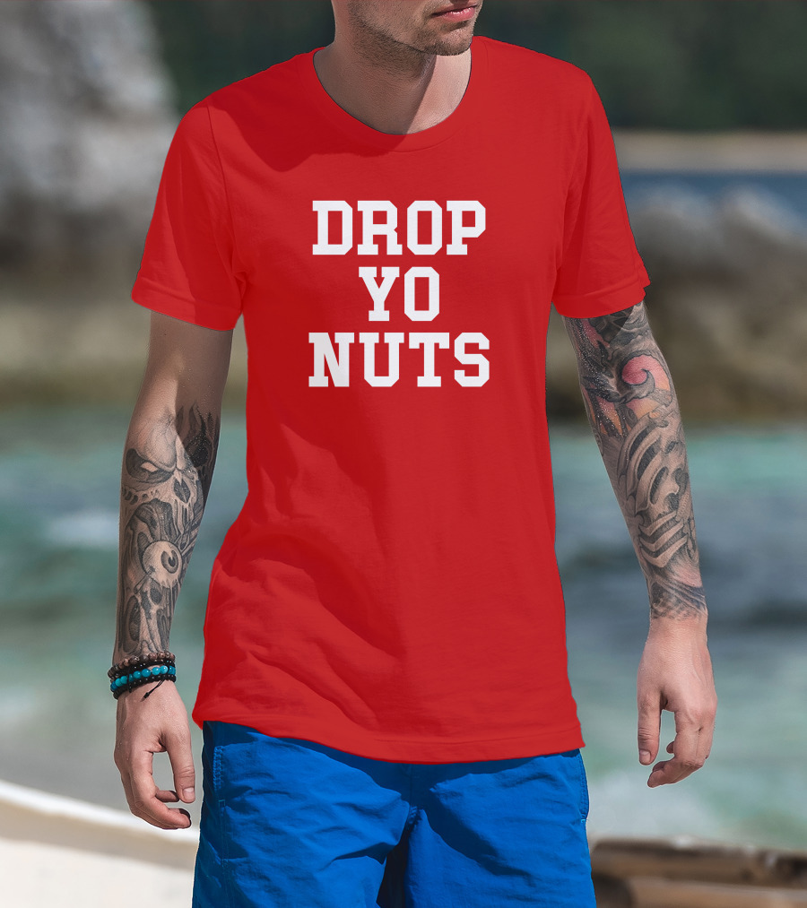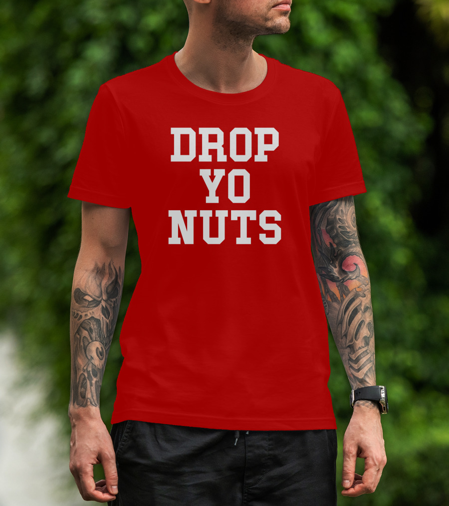 The Store Drop Yo Nuts T-shirt is designed for everyday wear and a consistent fit. Fabric is pre-shrunk ring-spun cotton with durable stitching. See the size chart below for exact measurements.