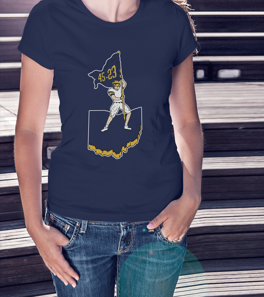 45-23 Football Player Flag Plant Ohio Outline T-Shirt