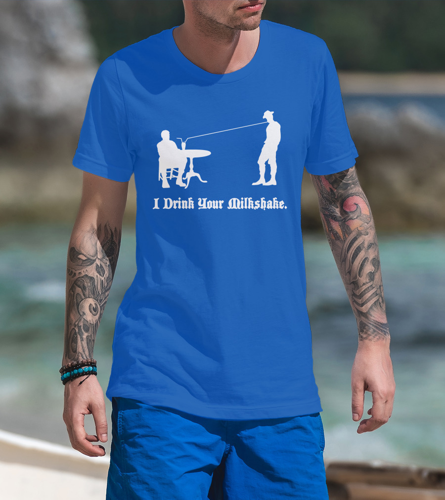 I Drink Your Milkshake Vintage Silhouette Blue T-Shirt