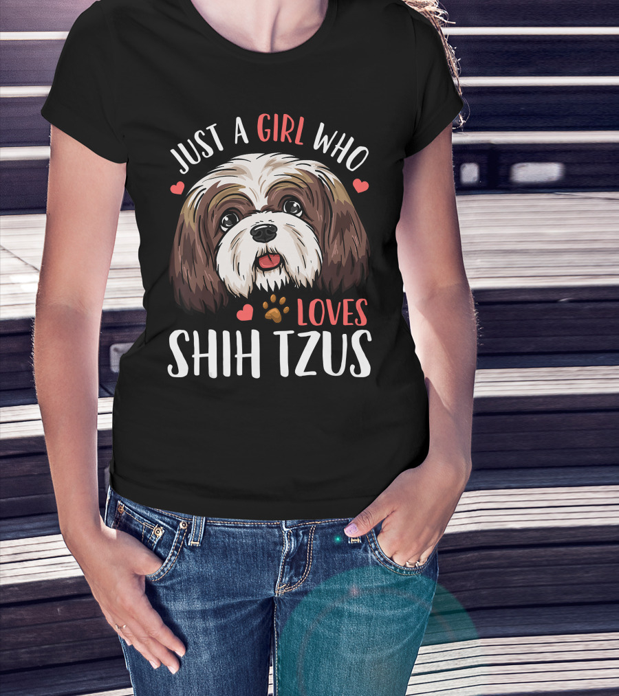 Just A Girl Who Loves Shih Tzus With Cute Heart Paw Print Kids T-Shirt