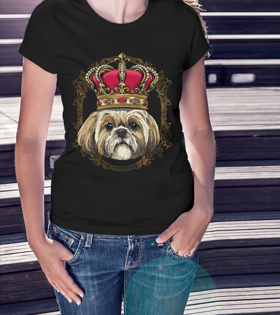 King Shih Tzu Crowned Portrait Queen Shih Tzu Dog T-Shirt