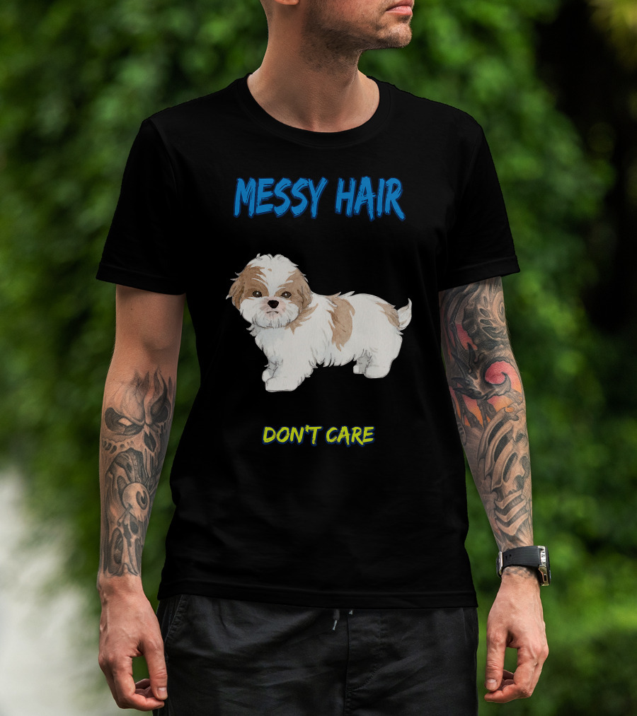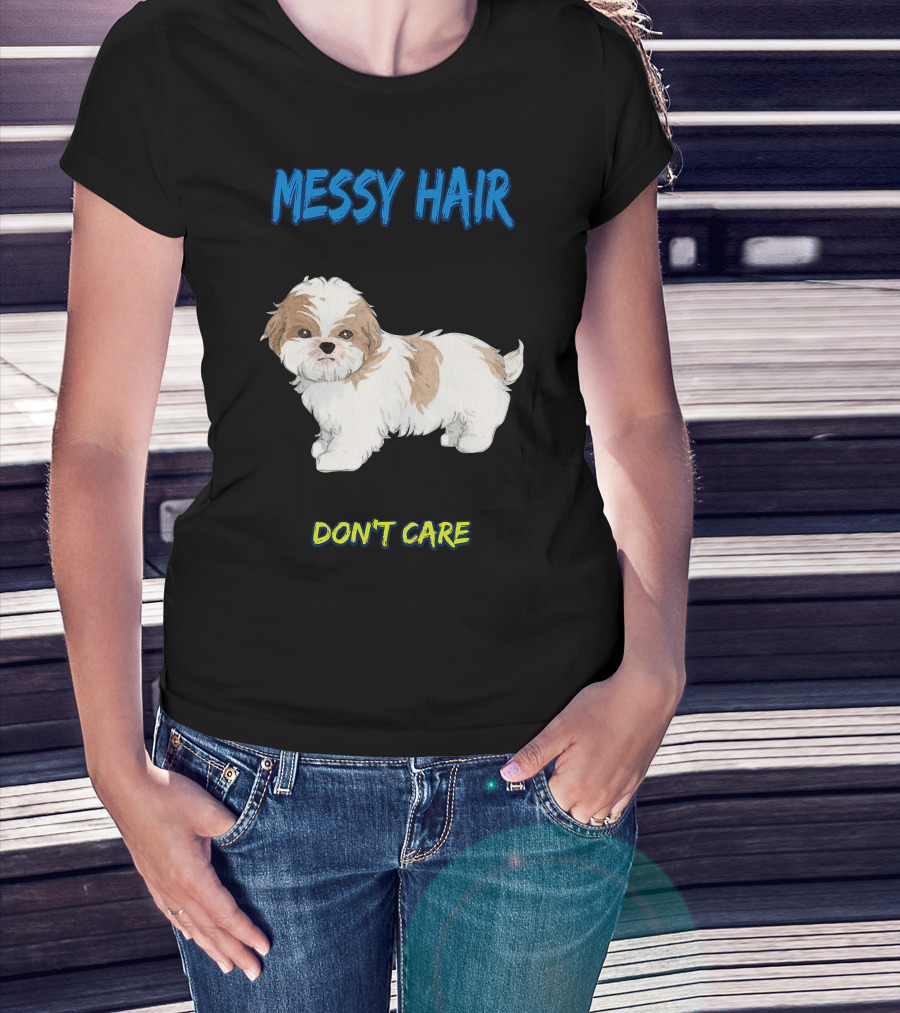 MESSY HAIR DON'T CARE Cute Puppy T-Shirt