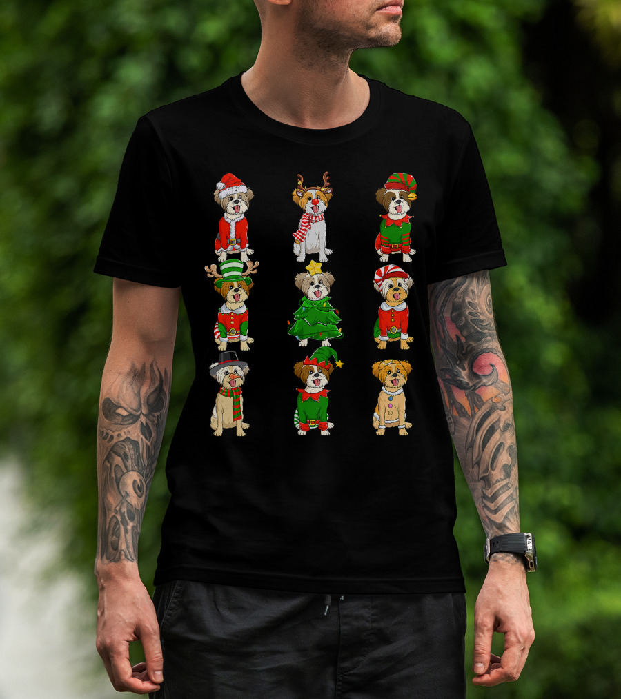 The Santa Shih Tzu Christmas Tree Lights Elf Reindeer Santa Shih Tzu Reindeer Elf T-shirt is designed for everyday wear and a consistent fit. Fabric is pre-shrunk ring-spun cotton with durable stitching. See the size chart below for exact measurements.