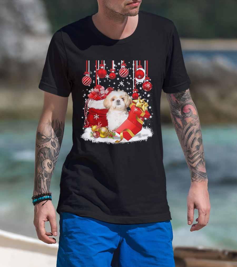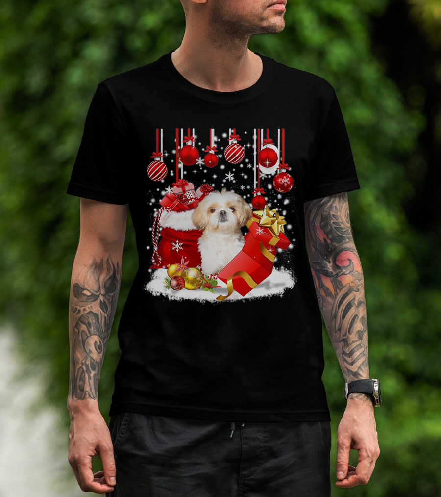 Shih Tzu Christmas Holiday Decorations With Dog And Festive Snow Ornaments T-Shirt