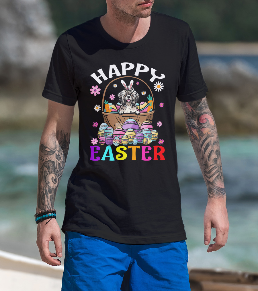 Shih Tzu Easter Bunny Dog With Colorful Eggs And Basket T-Shirt