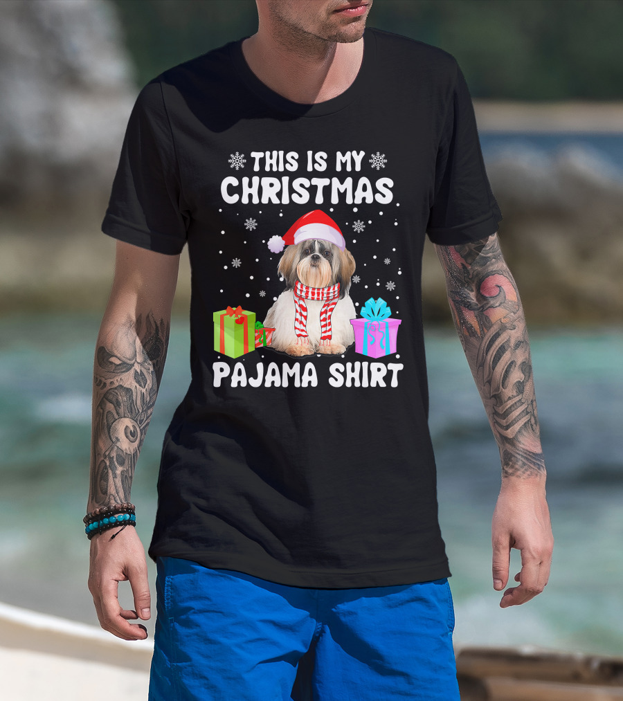 This Is My Christmas Shih Tzu Dog Pajama Puppy Love Santa Hat Presents T-Shirt