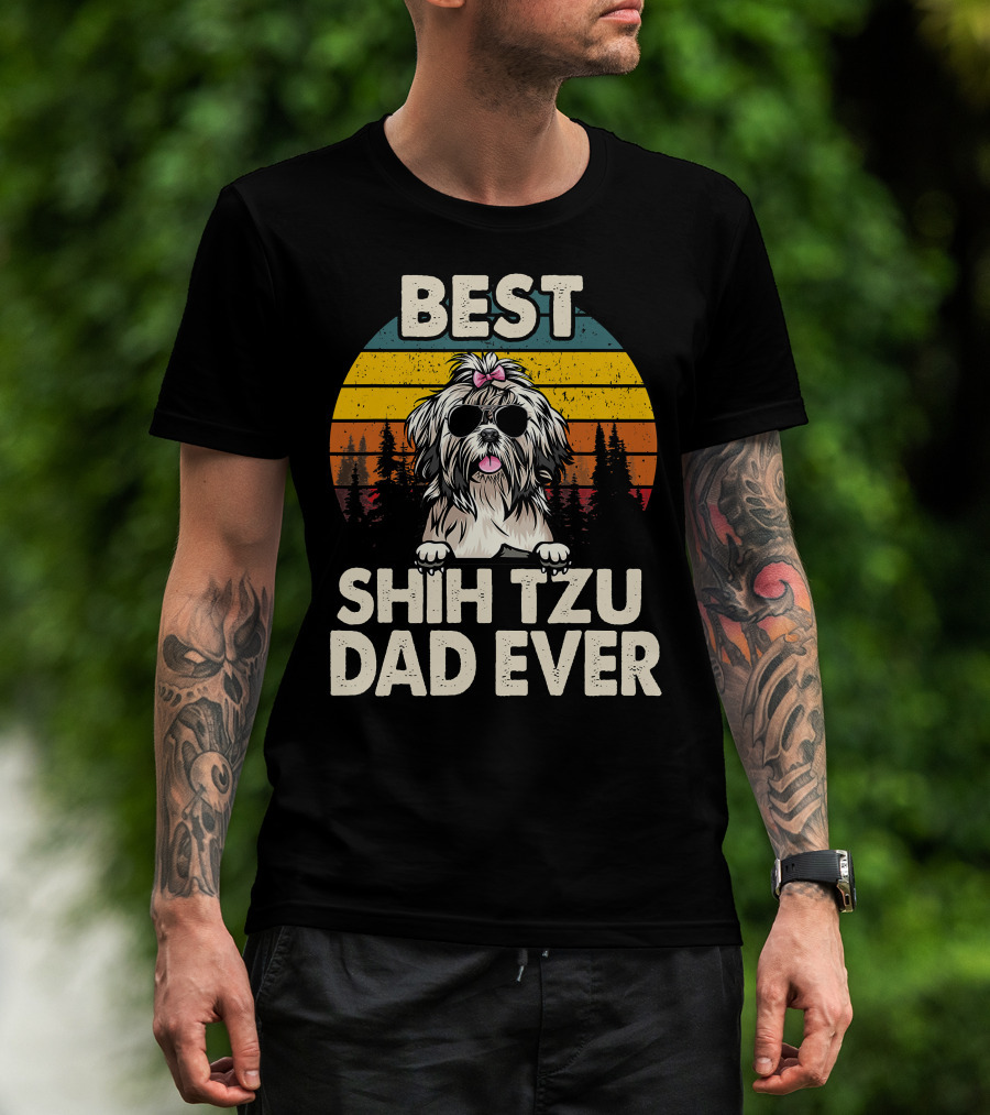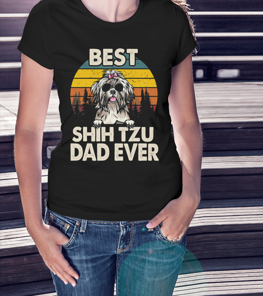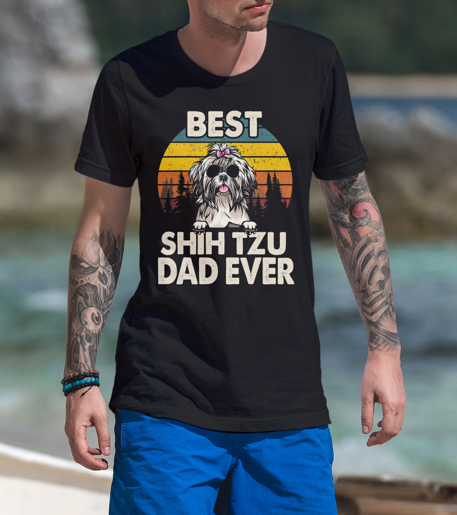 Best Shih Tzu Dad Ever Vintage Retro T-Shirt