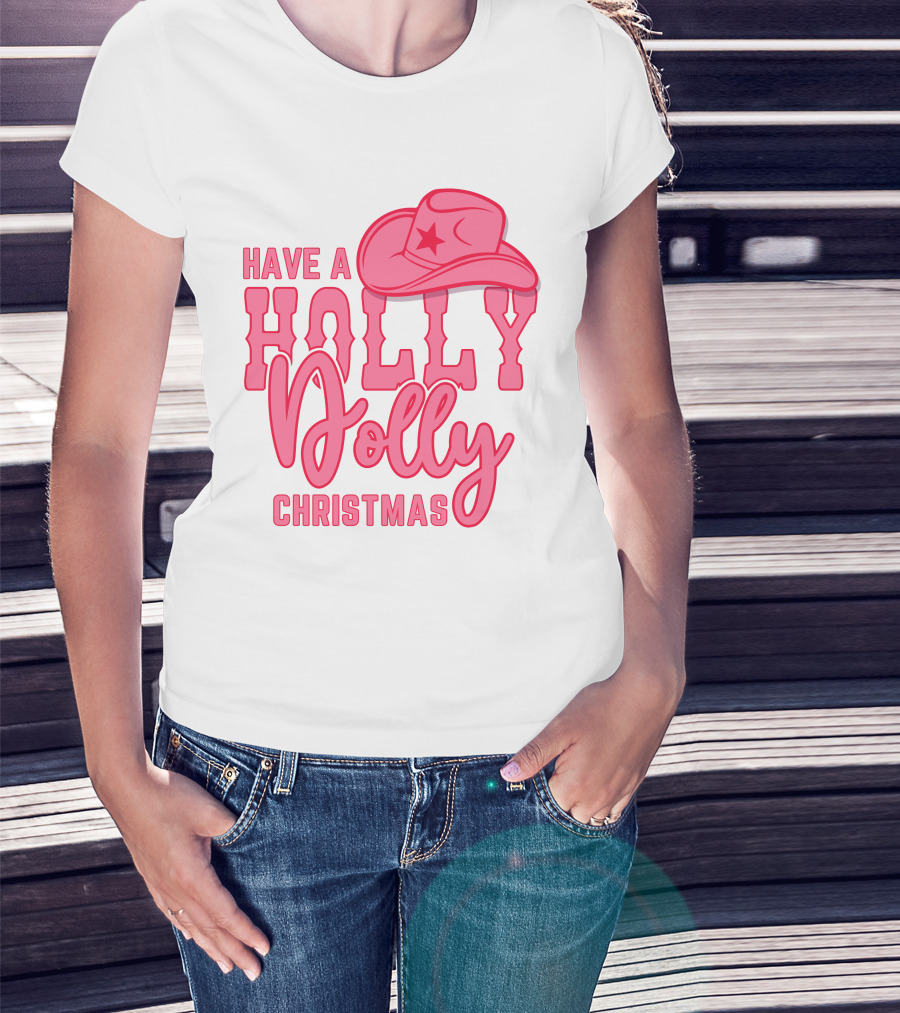 Have A Holly Dolly Christmas Pink Cowboy Hat T-Shirt