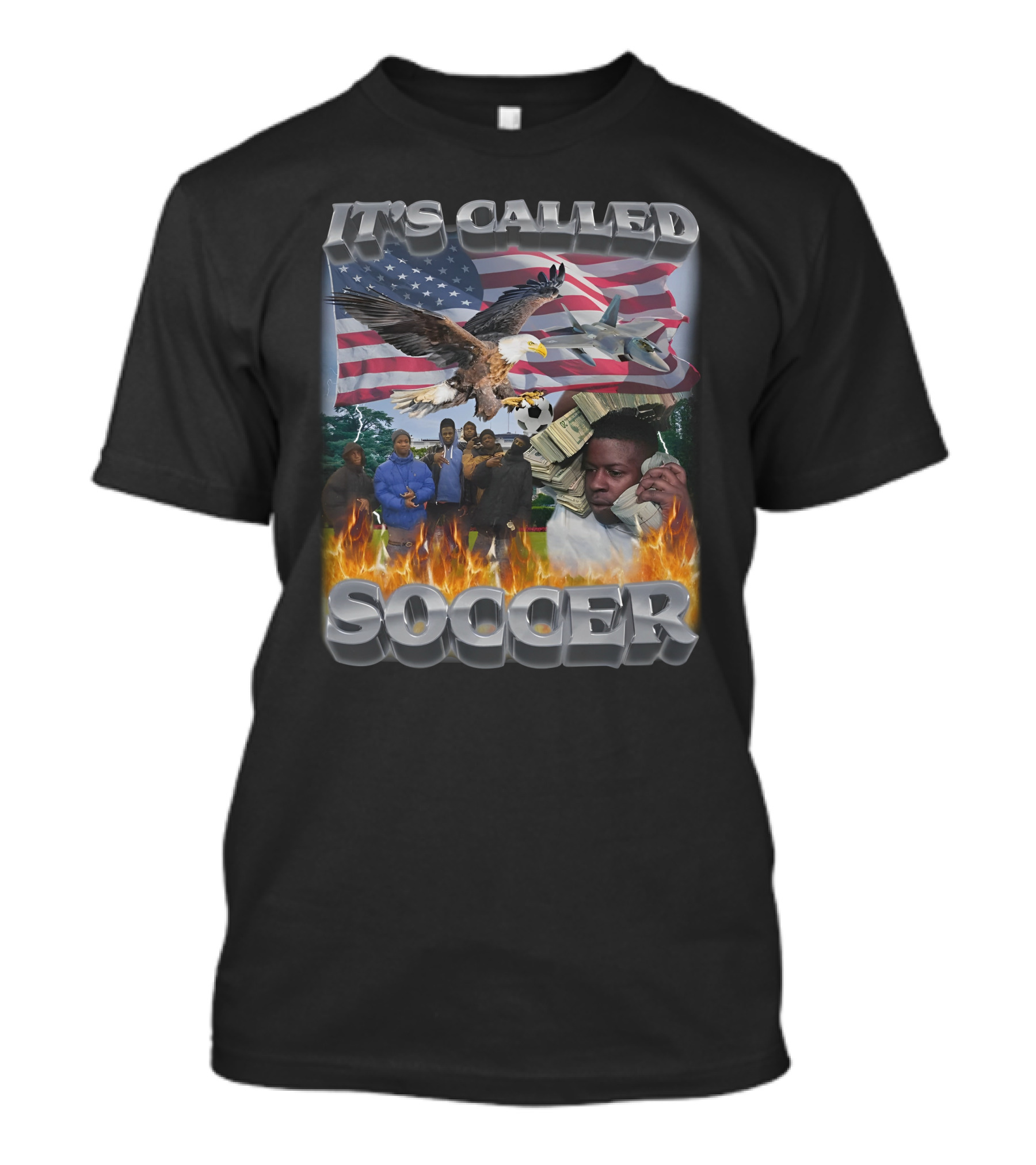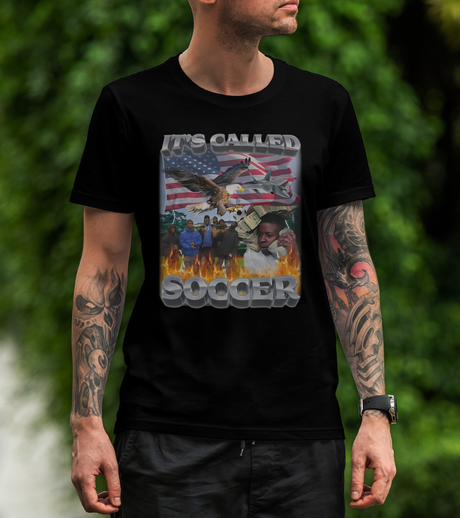 It's Called Soccer American Flag Bald Eagle Fighter Jet Cash Phone Fire T-Shirt