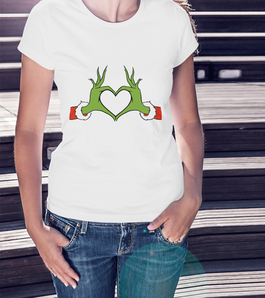 Grinch Hand Heart Christmas Santa Sleeve T-Shirt