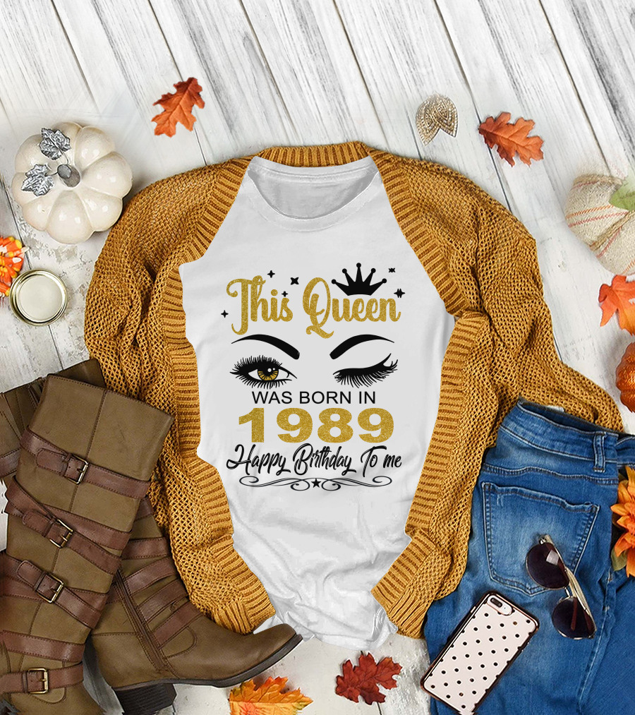 This Queen Was Born In 1989 Happy Birthday To Me With Glittery Crown And Eyes T-Shirt