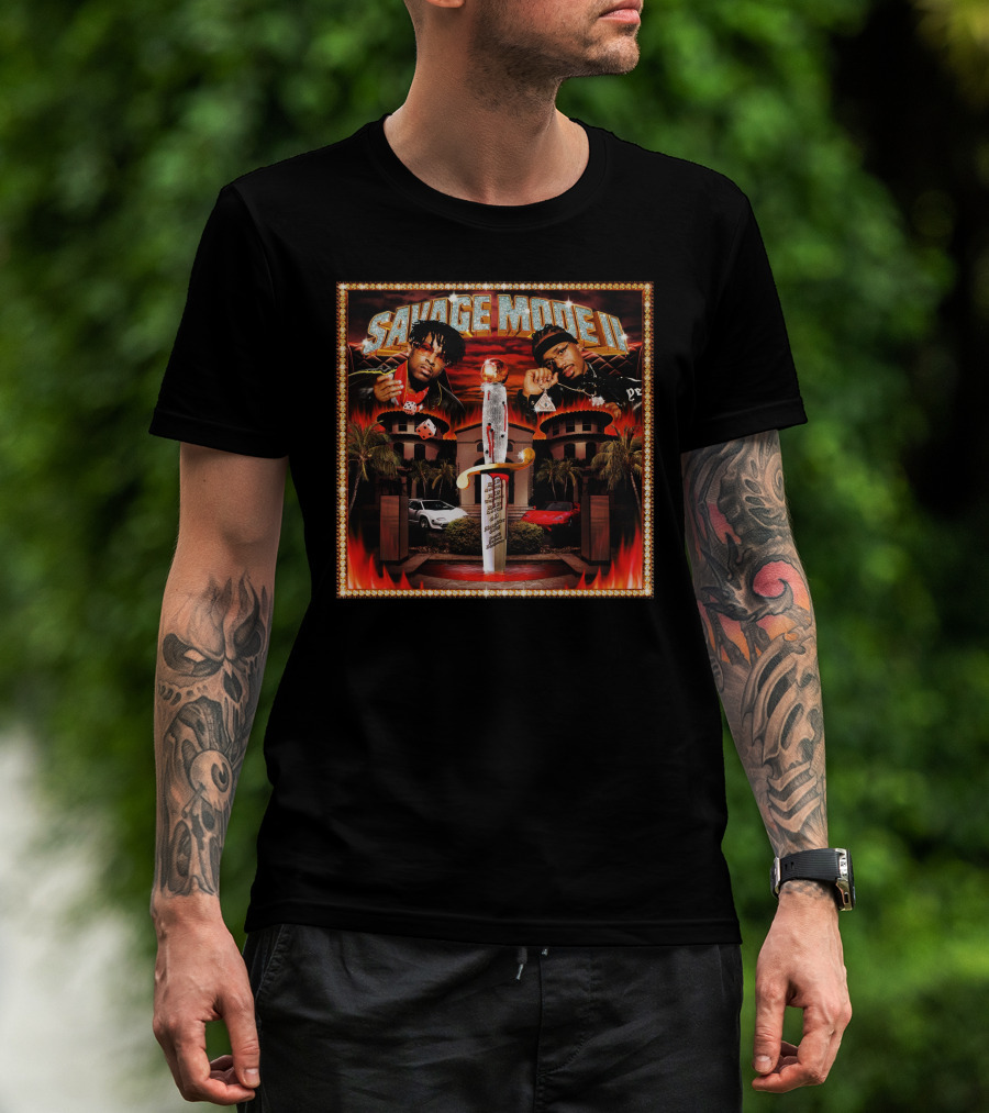 SAVAGE MODE II Knife Car Mansion Flames T-Shirt