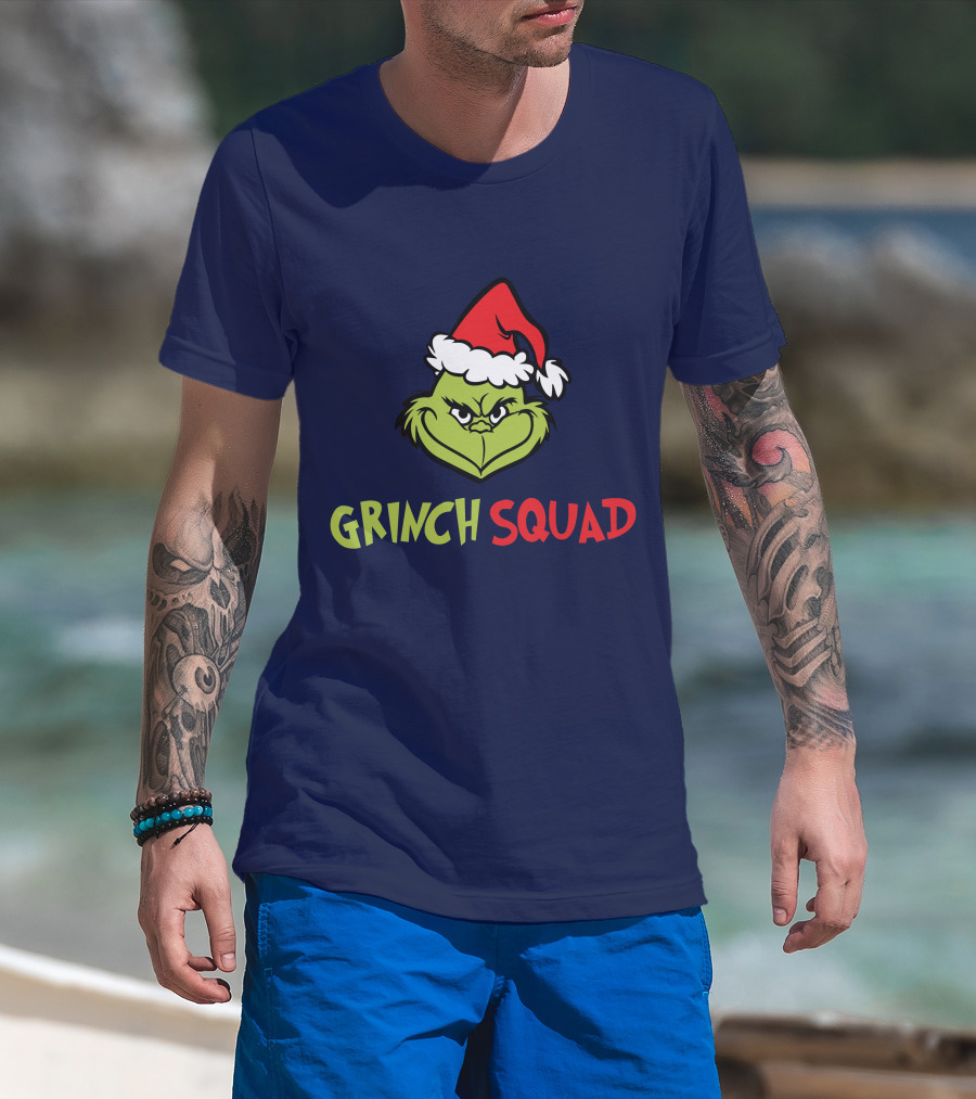 The Grinch Squad Merry Christmas Santa Hat T-shirt is designed for everyday wear and a consistent fit. Fabric is pre-shrunk ring-spun cotton with durable stitching. See the size chart below for exact measurements.