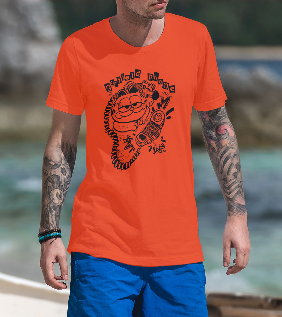 The Craftsanity Shop Garfield Phone Relaxed Vintage Comic Vibe T-shirt is designed for everyday wear and a consistent fit. Fabric is pre-shrunk ring-spun cotton with durable stitching. See the size chart below for exact measurements.