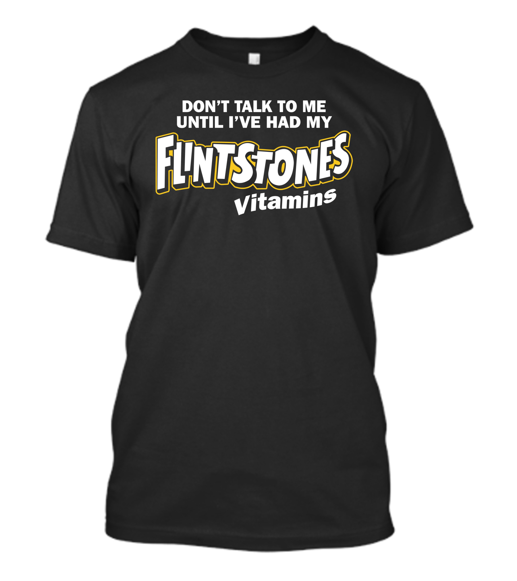 The Trashcan Paul Don't Talk To Me Until I've Had My Flintstones Vitamins T-shirt is designed for everyday wear and a consistent fit. Fabric is pre-shrunk ring-spun cotton with durable stitching. See the size chart below for exact measurements.