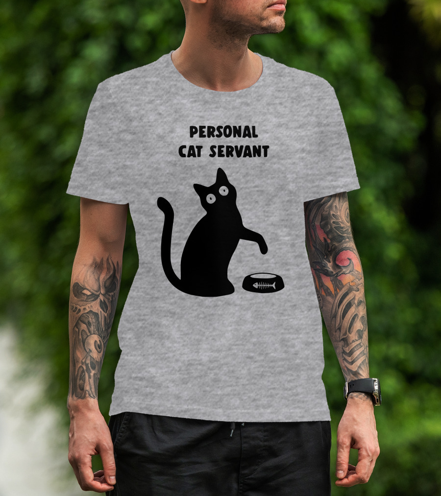 The Porridgebrain Personal Cat Servant Silhouette with Fish Bone Bowl T-shirt is designed for everyday wear and a consistent fit. Fabric is pre-shrunk ring-spun cotton with durable stitching. See the size chart below for exact measurements.