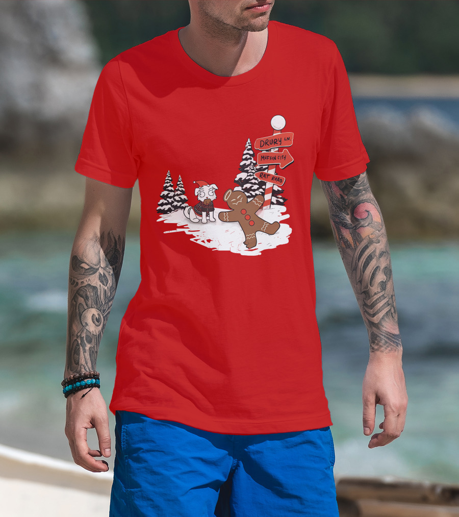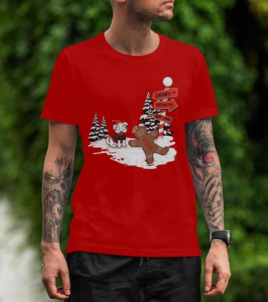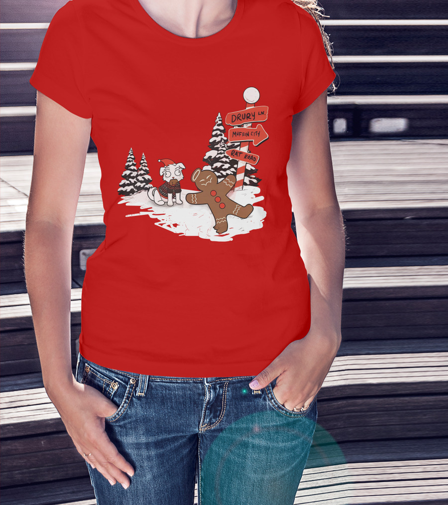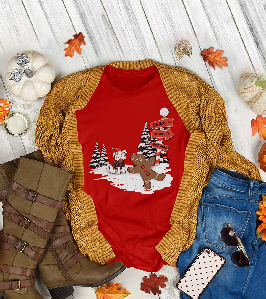 Badboyhalo Holiday Drury Lane Muffin City Rat Road Christmas Dog And Gingerbread Scene T-Shirt