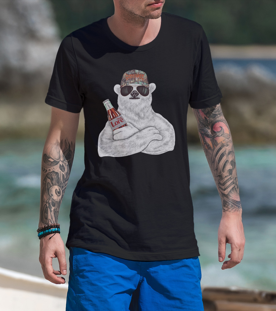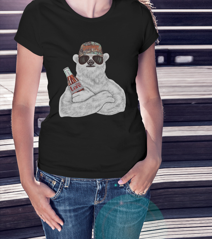 Polar Bear Gods Hate Hard Lore Camo Hat Sunglasses Holding Bottle T-Shirt