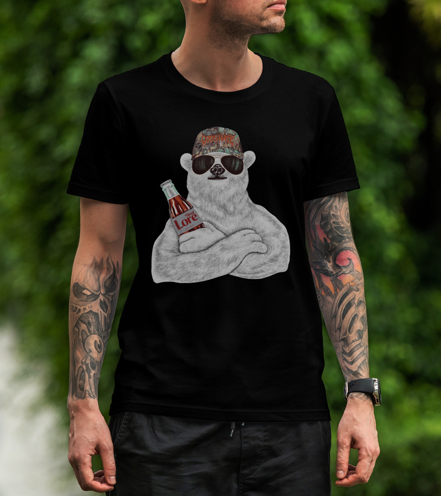 The Polar Bear Gods Hate Hard Lore Camo Hat Sunglasses Holding Bottle T-shirt is designed for everyday wear and a consistent fit. Fabric is pre-shrunk ring-spun cotton with durable stitching. See the size chart below for exact measurements.