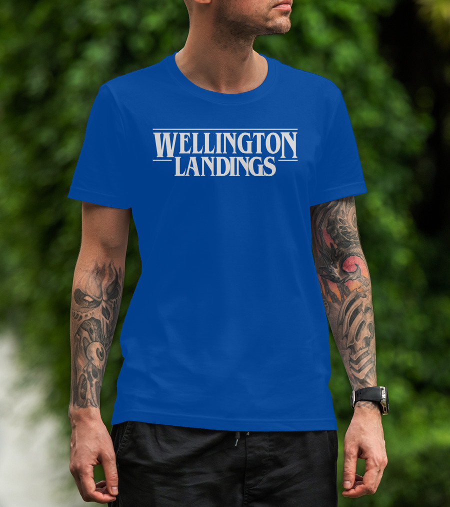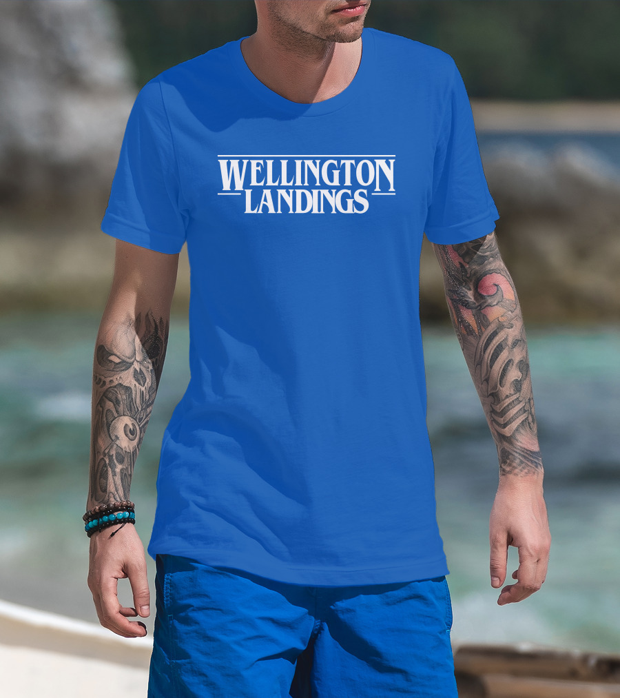 The Wellington Landings Blue T-shirt is designed for everyday wear and a consistent fit. Fabric is pre-shrunk ring-spun cotton with durable stitching. See the size chart below for exact measurements.