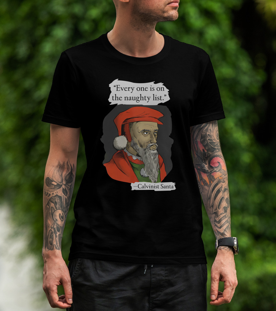 Every One Is On The Naughty List Calvinist Santa With Red Hat And Beard T-Shirt