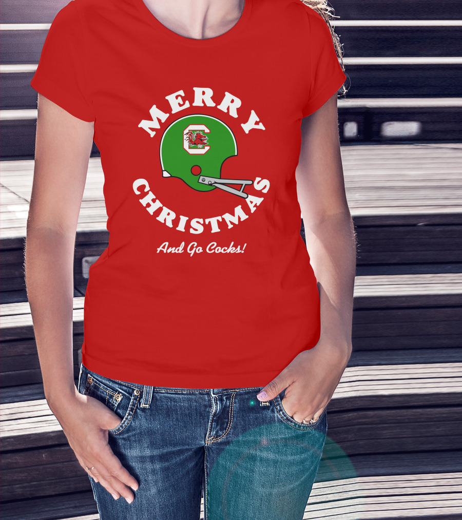 Merry Christmas And Go Cocks Football Helmet T-Shirt