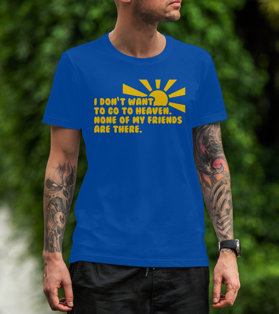 I Don't Want To Go To Heaven None Of My Friends Are There Yellow Sun T-Shirt