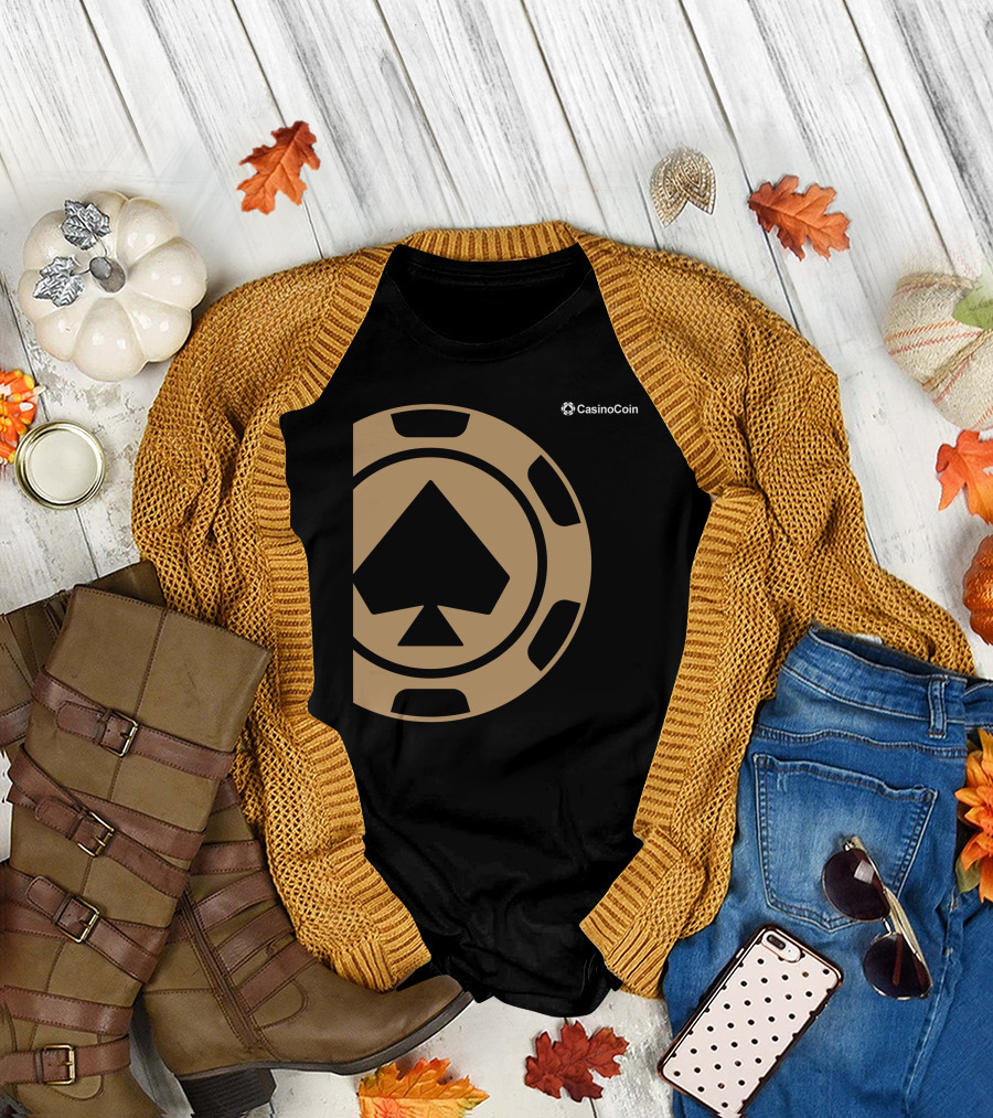 The Casinocoin Gold Spade Chip T-shirt is designed for everyday wear and a consistent fit. Fabric is pre-shrunk ring-spun cotton with durable stitching. See the size chart below for exact measurements.