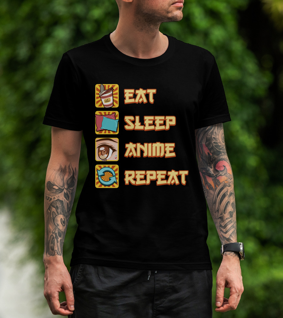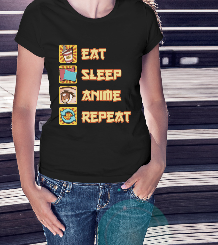 Eat Sleep Anime Repeat Icons Fun T-Shirt