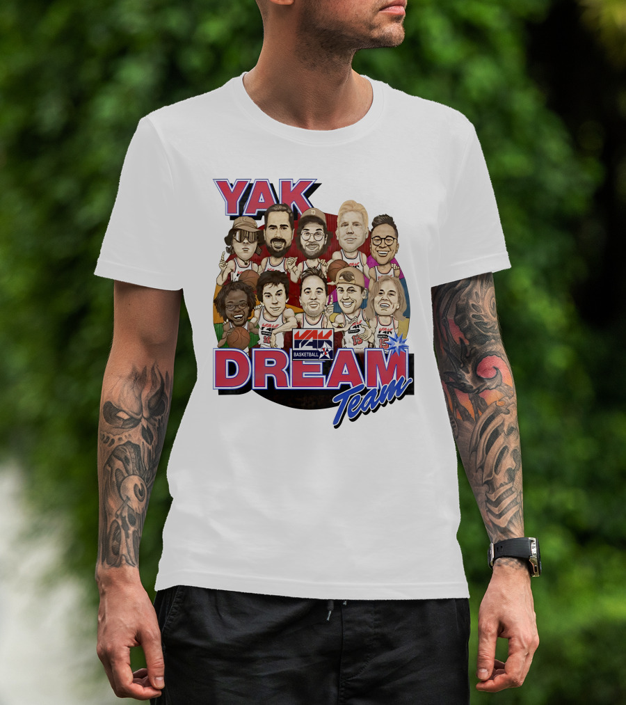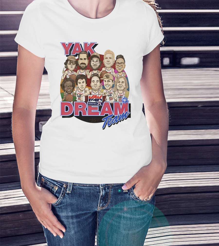 The Yak Dream Team Basketball Van Fan T-shirt is designed for everyday wear and a consistent fit. Fabric is pre-shrunk ring-spun cotton with durable stitching. See the size chart below for exact measurements.
