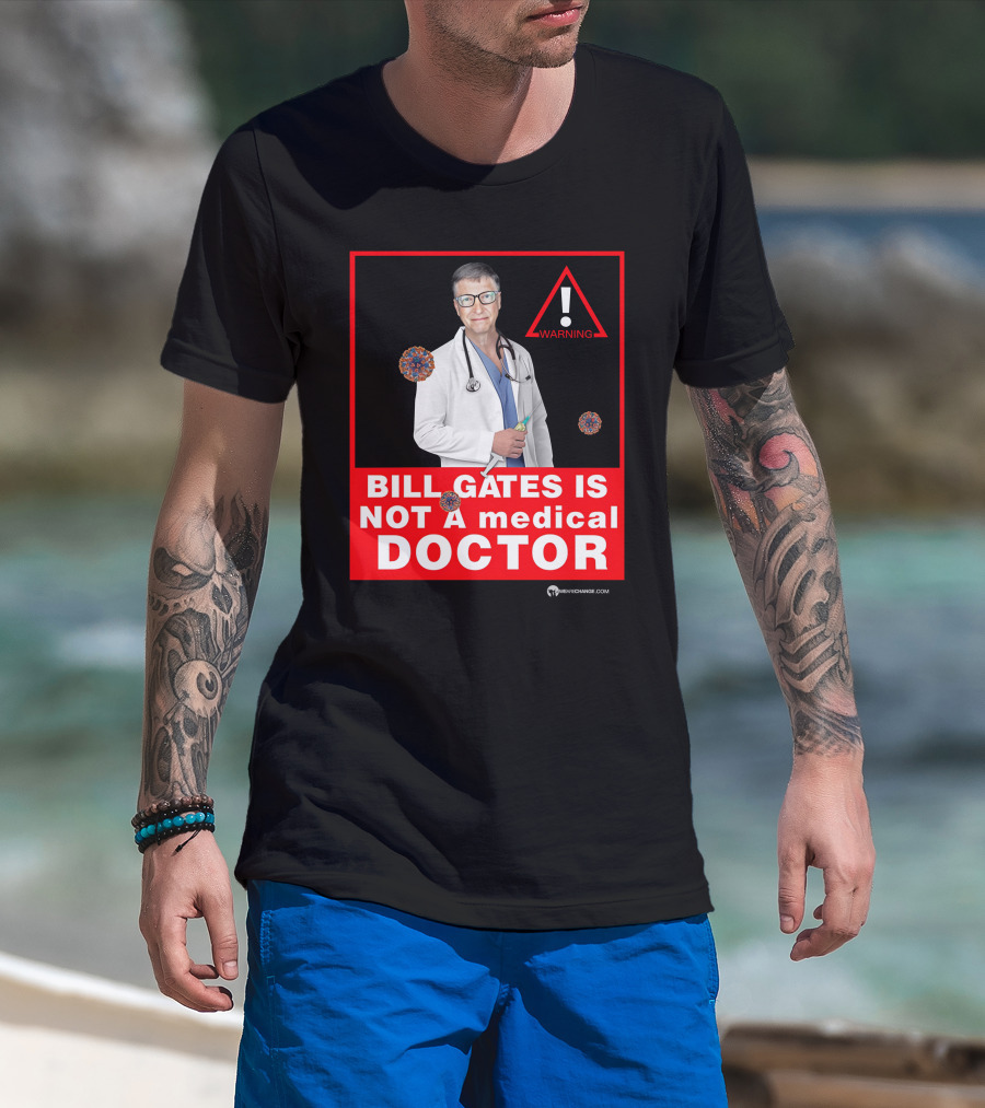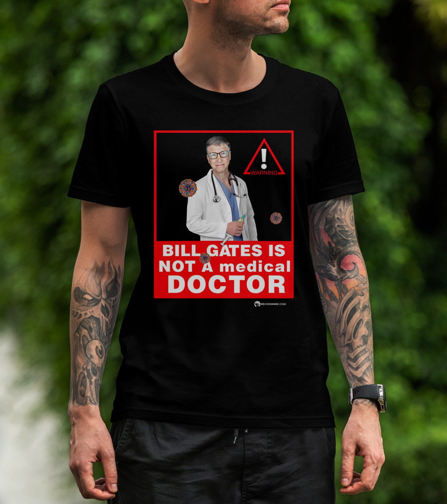 Bill Gates Is Not A Medical Doctor Warning Image With Virus Icons T-Shirt