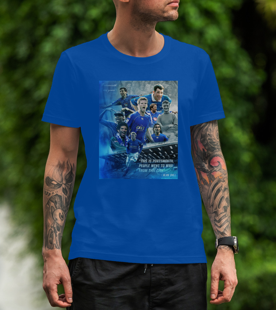 The Portsmouth 125 Years This Is Portsmouth, People Went to War From This City Alan Ball T-shirt is designed for everyday wear and a consistent fit. Fabric is pre-shrunk ring-spun cotton with durable stitching. See the size chart below for exact measurements.