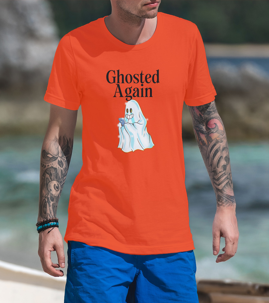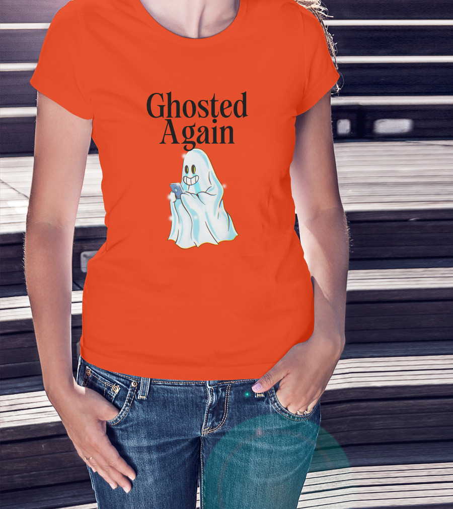 Ghosted Again Smiling Ghost With Phone Oranger T-Shirt