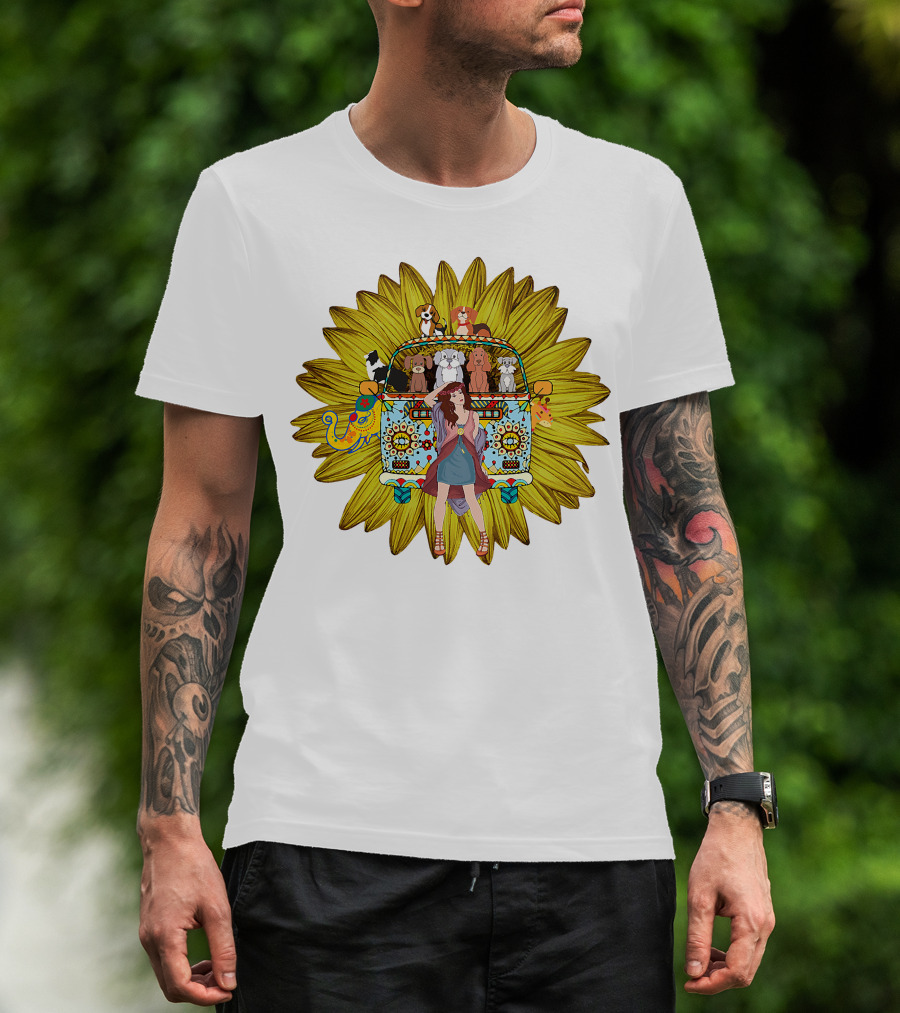 I'm Mostly Peace Love Animals Hippie Van Sunflower Dogs T-Shirt