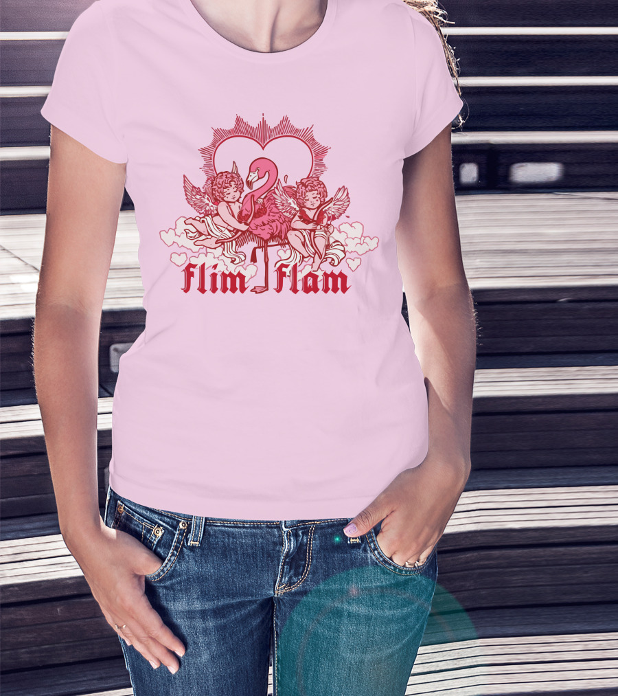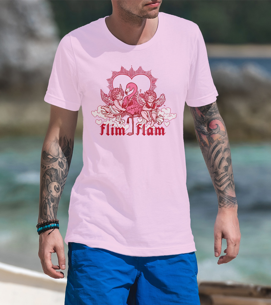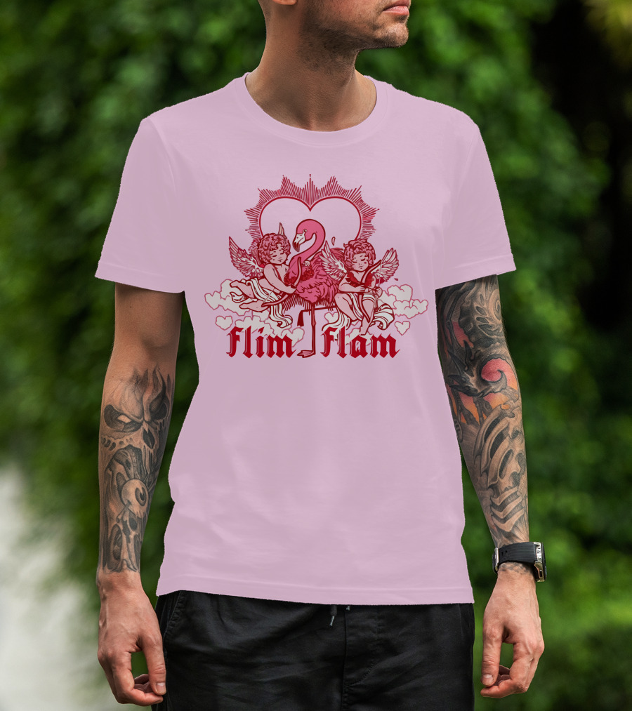FLIM FLAM CHERUB LIGHT PINK HEART FLAMINGO T-Shirt