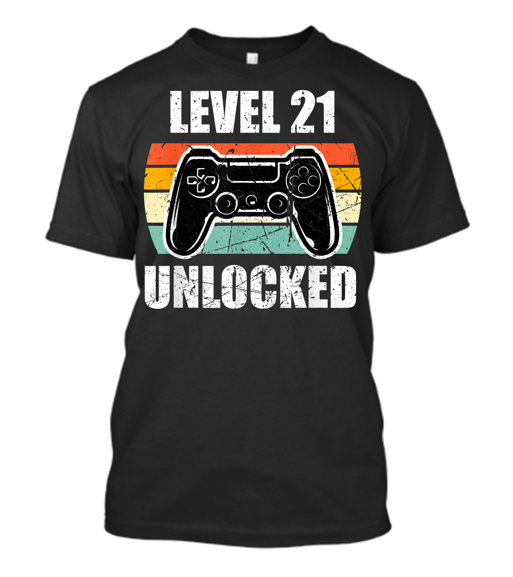Level 21 Unlocked Vintage Gaming Controller 21st Birthday Gamer T-Shirt
