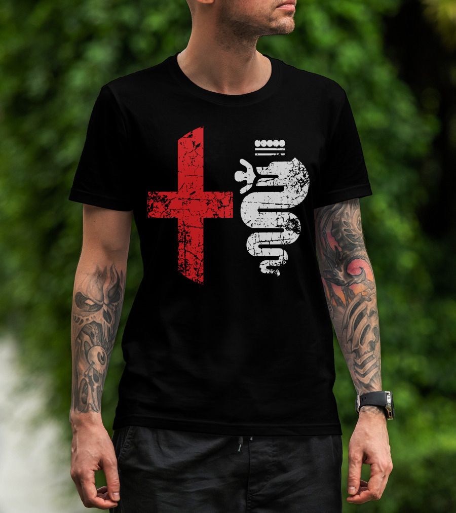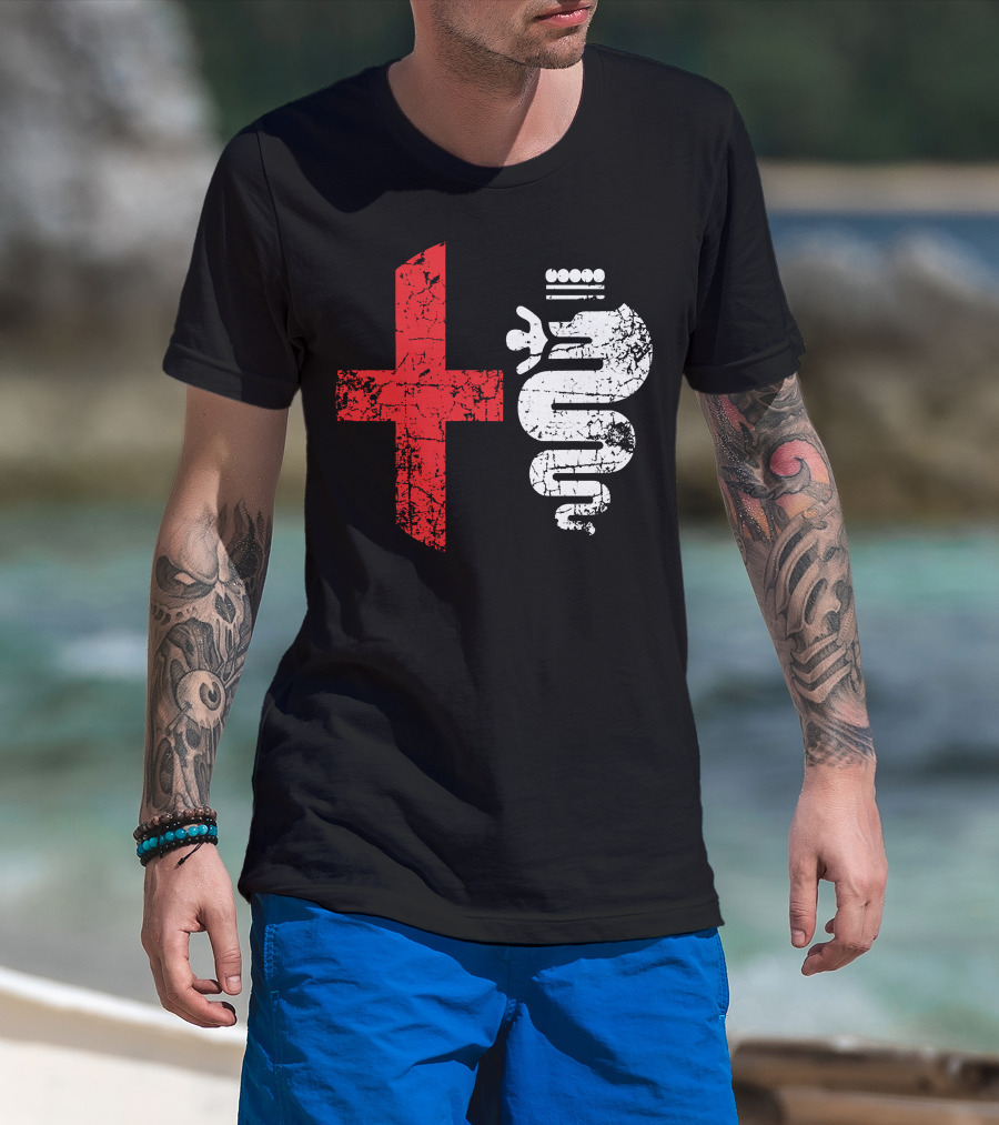 Alfa Car Drivers Stylish Grunge Red Cross Serpent T-Shirt