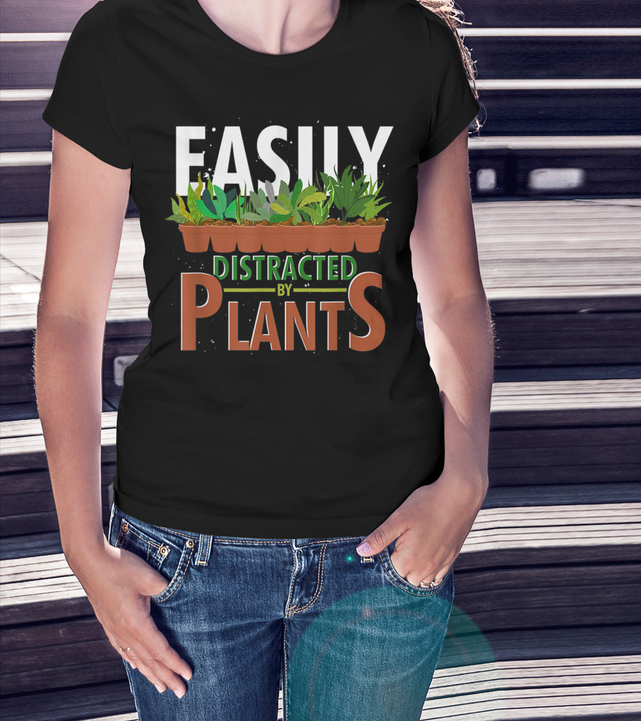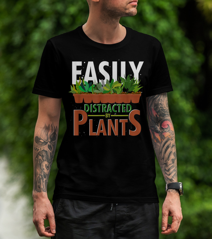 Easily Distracted By Plants Horticulture Garden Gardener Funny Gardening T-Shirt