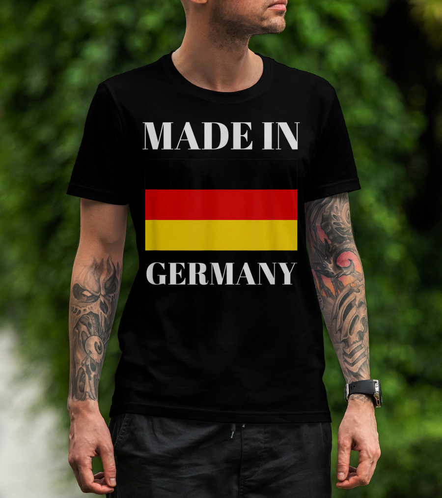 The Made in Germany Flag Design Born in Germany Gift German Gift T-shirt is designed for everyday wear and a consistent fit. Fabric is pre-shrunk ring-spun cotton with durable stitching. See the size chart below for exact measurements.
