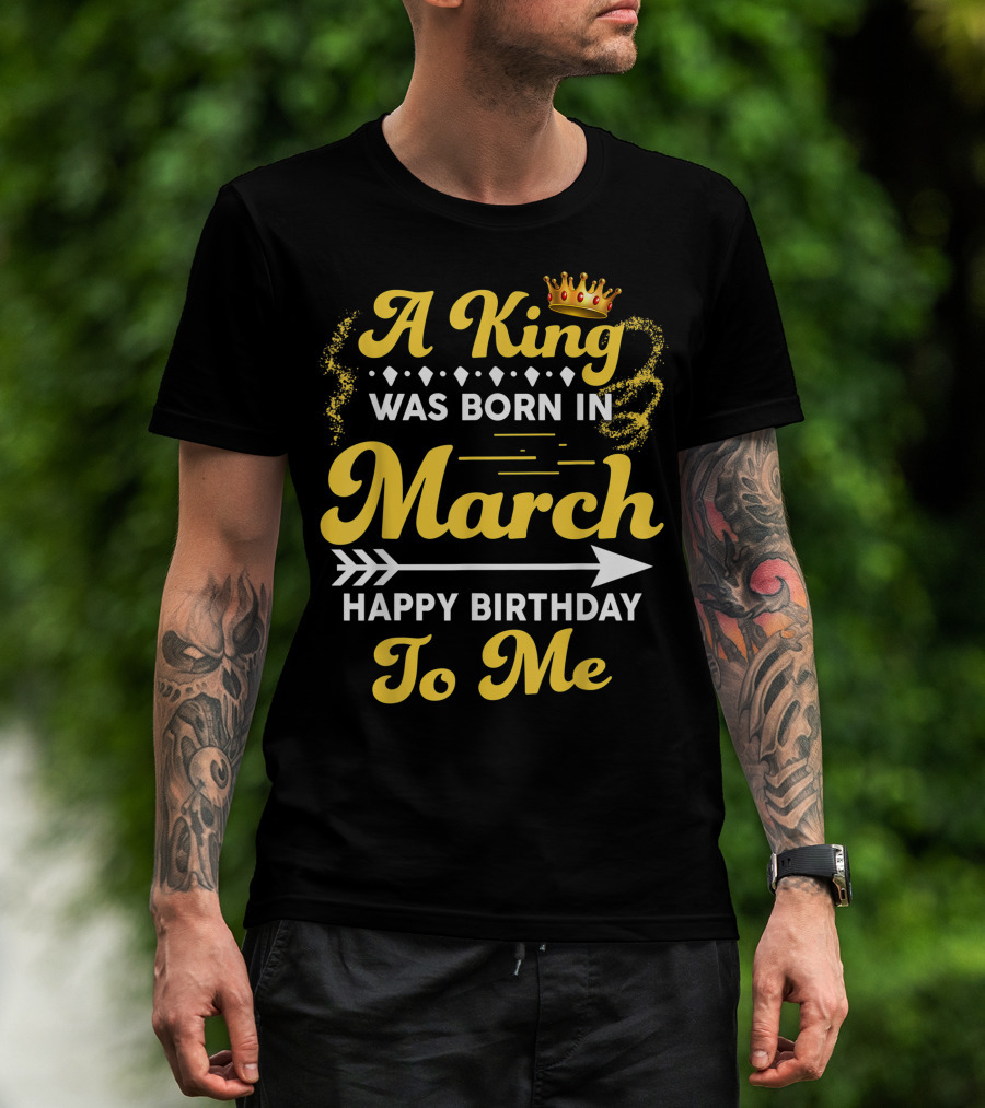 A King Was Born In March Happy Birthday To Me Crown Arrow Elements T-Shirt
