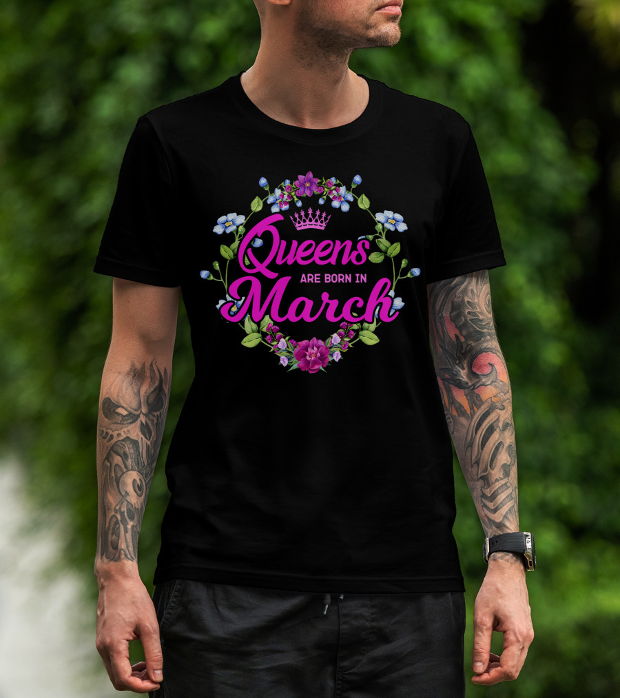Queens Are Born In March Floral Crown T-Shirt
