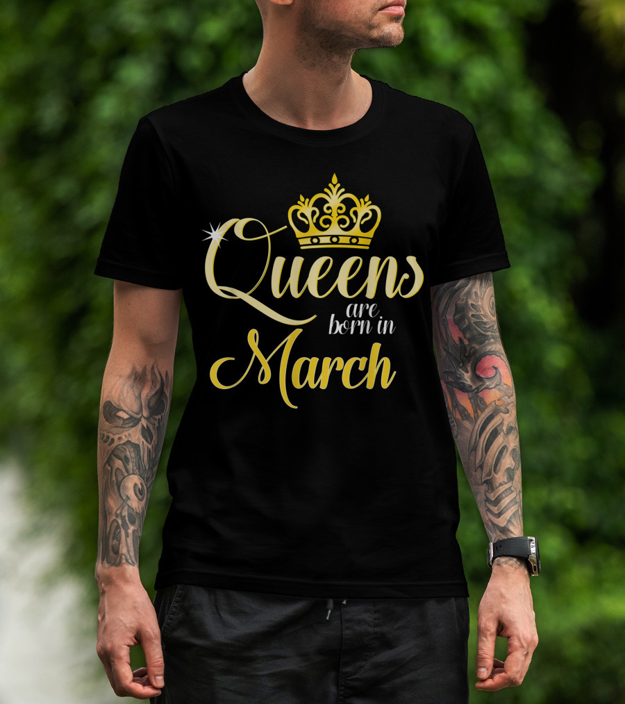 Queens Are Born In March With Golden Crown Motif For Women Birthday T-Shirt