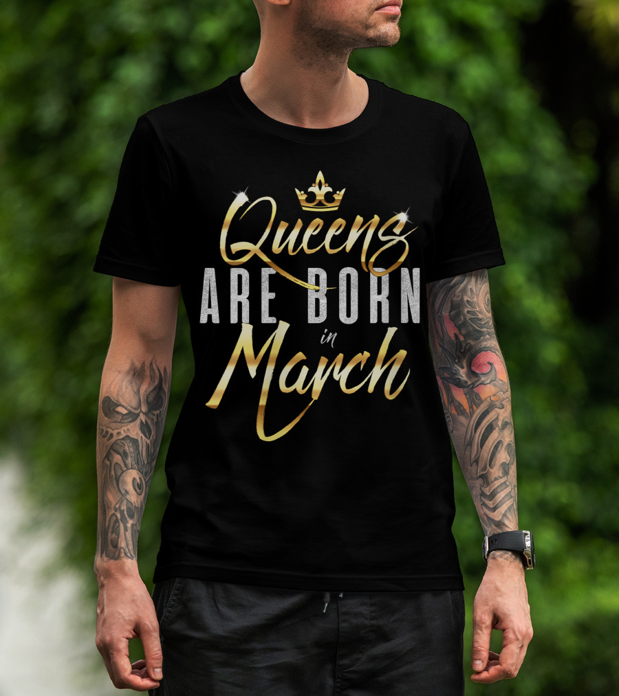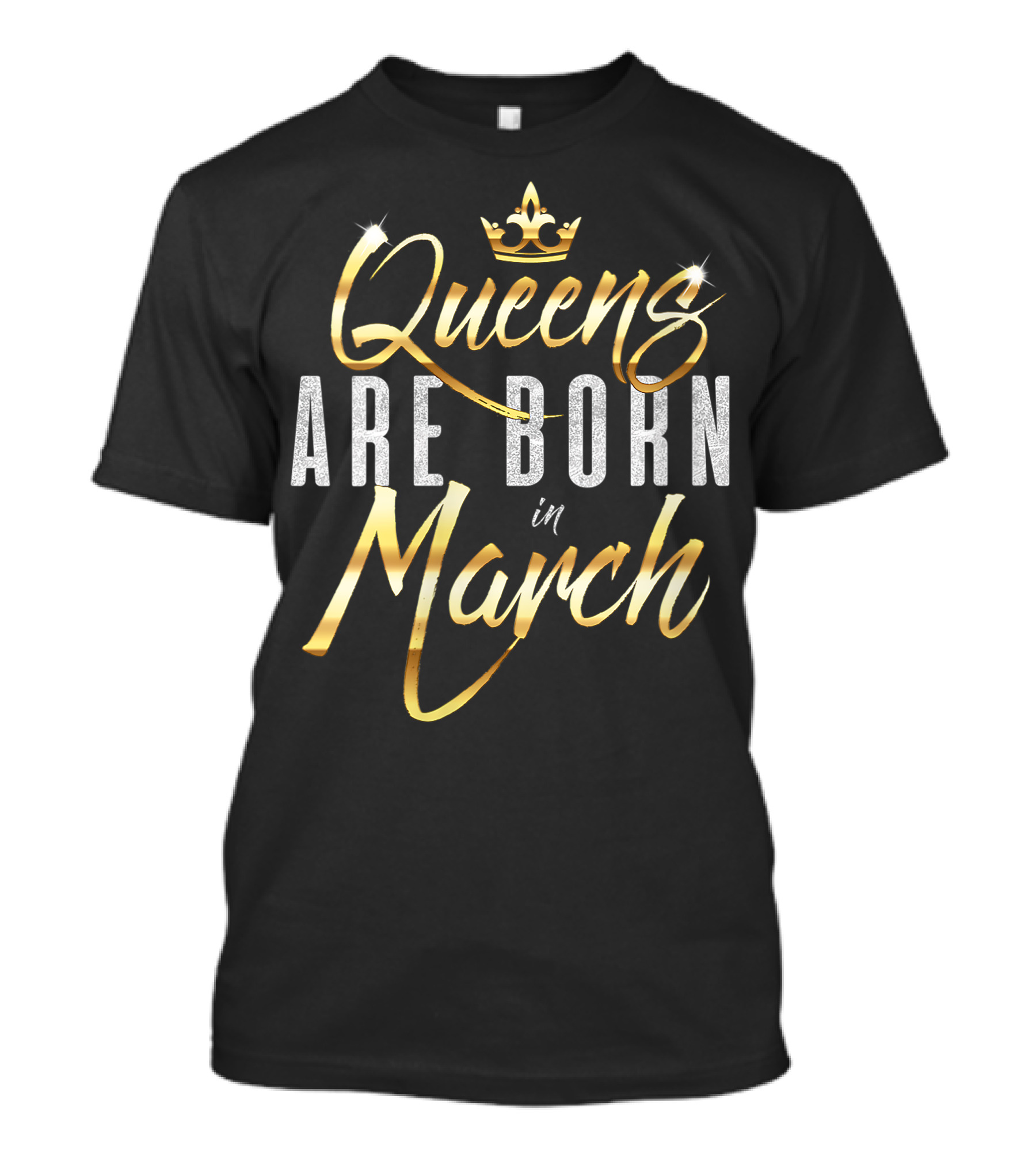 The Queens Are Born in March Birthday Gift Women Girls V-Neck Golden Crown and Sparkle T-shirt is designed for everyday wear and a consistent fit. Fabric is pre-shrunk ring-spun cotton with durable stitching. See the size chart below for exact measurements.