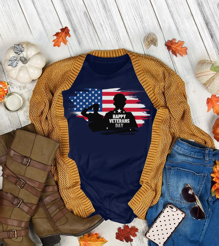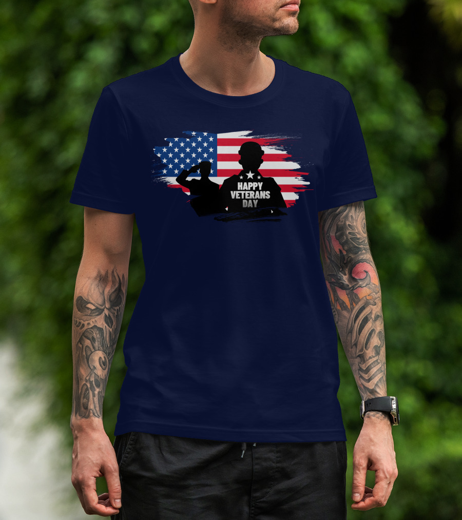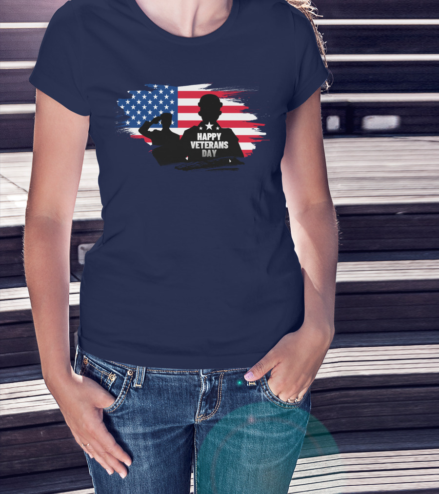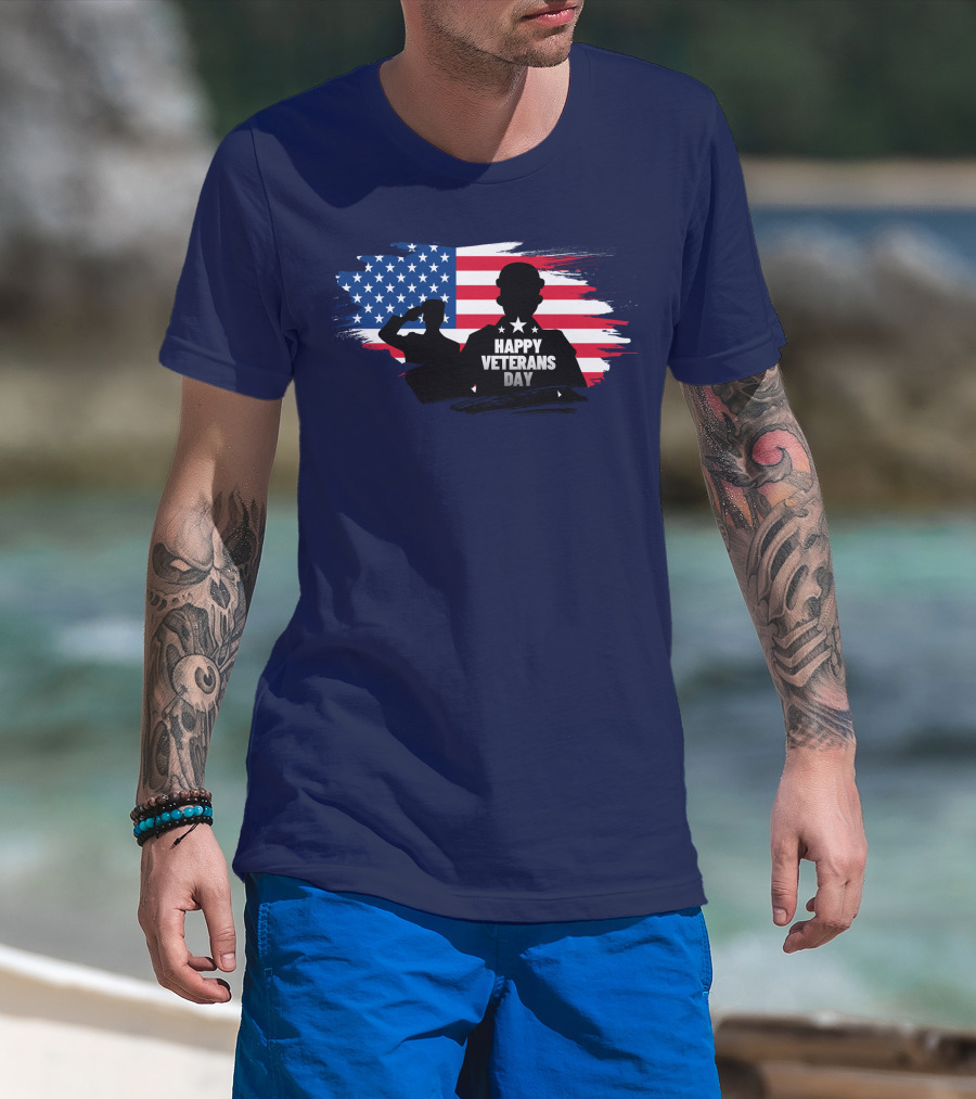 Happy Veterans Day Flag With Saluting T-Shirt