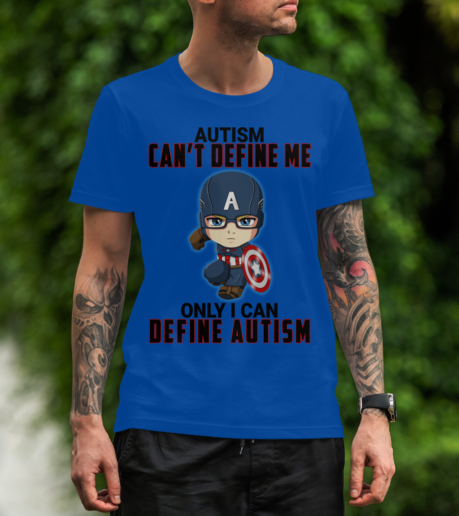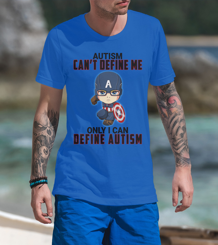Autism Can't Define Me Only I Can Define Autism Captain Shield Character T-Shirt