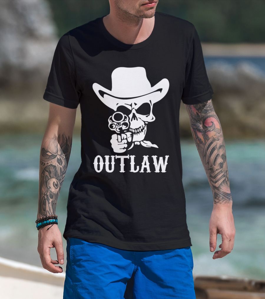 19 Outlaw Cowboy Motorbike 0997 Vintage Wild West Adventure Rider T-Shirt