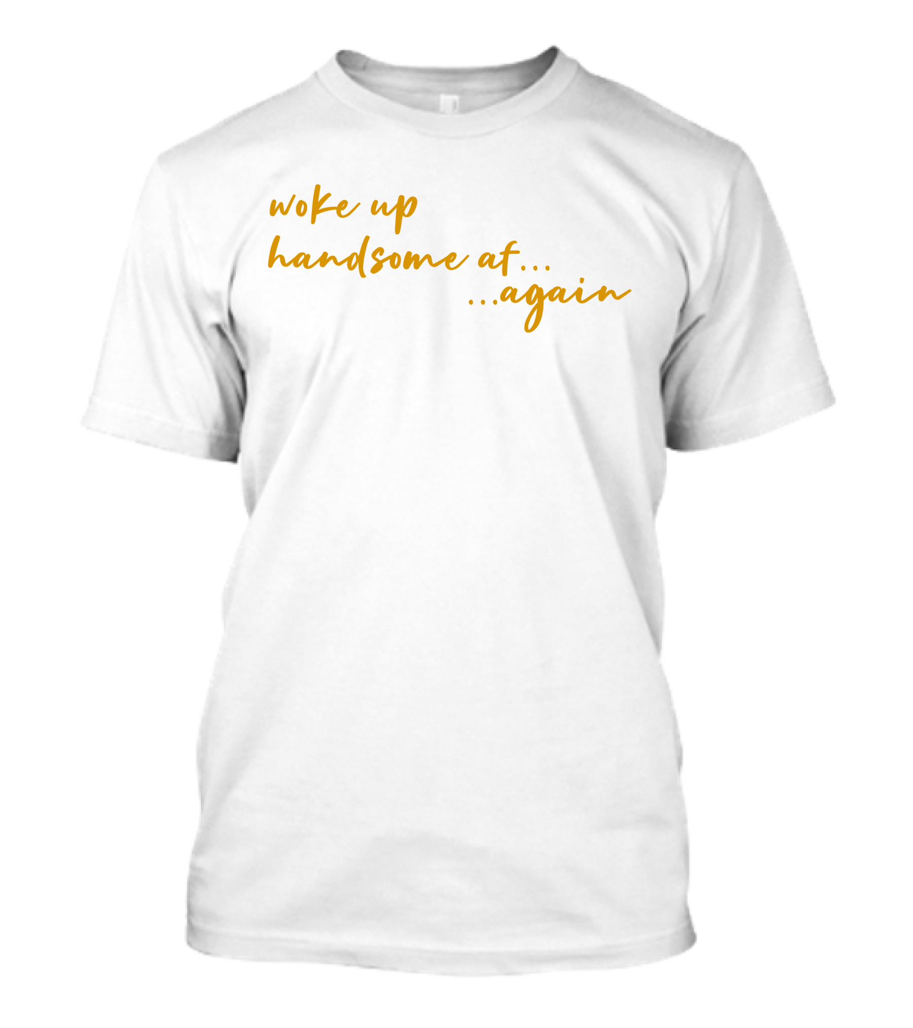 The Woke Up Handsome AF Again Uncle RJ's White T-shirt is designed for everyday wear and a consistent fit. Fabric is pre-shrunk ring-spun cotton with durable stitching. See the size chart below for exact measurements.